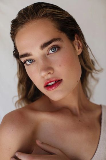 glowy makeup done on a girl for a closeup shot of the model